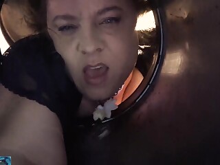 Длинноволосая баба кончает, усевшись верхом на конец